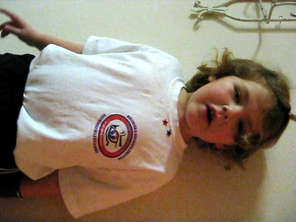 Tot girl in living room sings Star Spangled Banner. Cute.