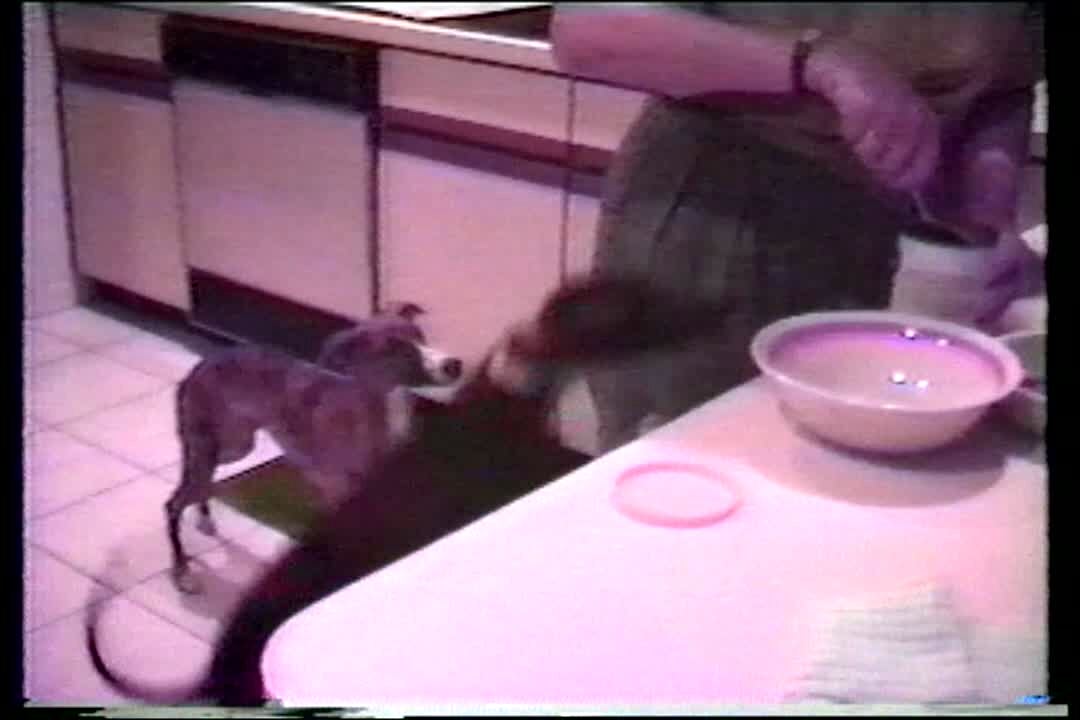 DOG FOOD JUMPER Dog jumps up & down while food is being prepared.