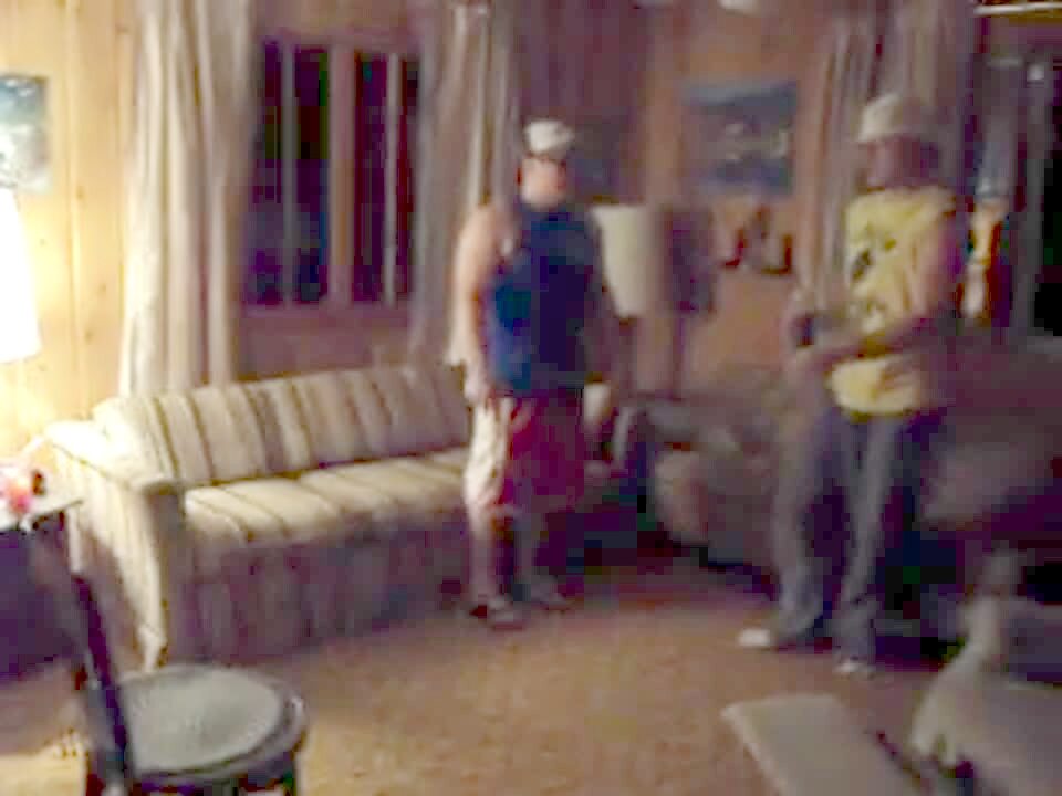 A man dances with a tot boy in the living room and accidentally bumps into a young boy with his butt and knocks him down. Music rights not cleared.