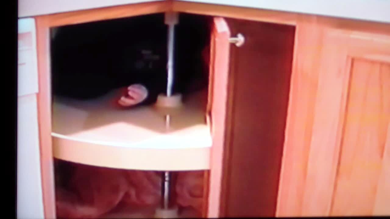 Tot boy whines to dad that he can't see, dad tells him to open his eyes, boy crosses his eyes.