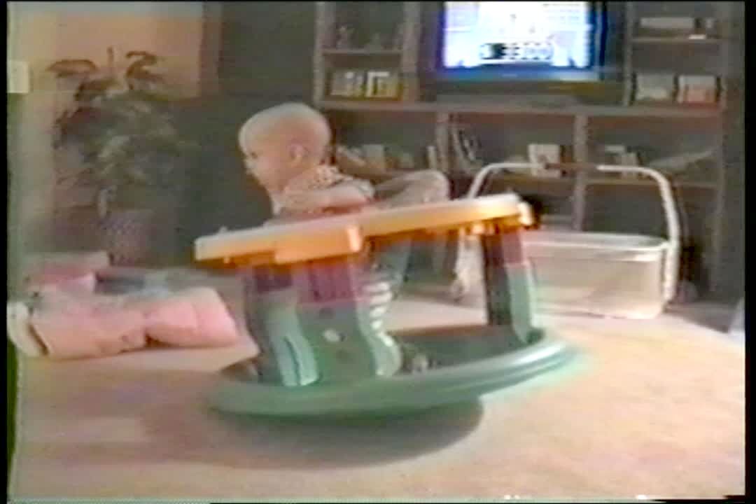 THE BOUNCING BABY CHAIR Baby in bouncy seat exercises in rhythm to exercise tape on TV.