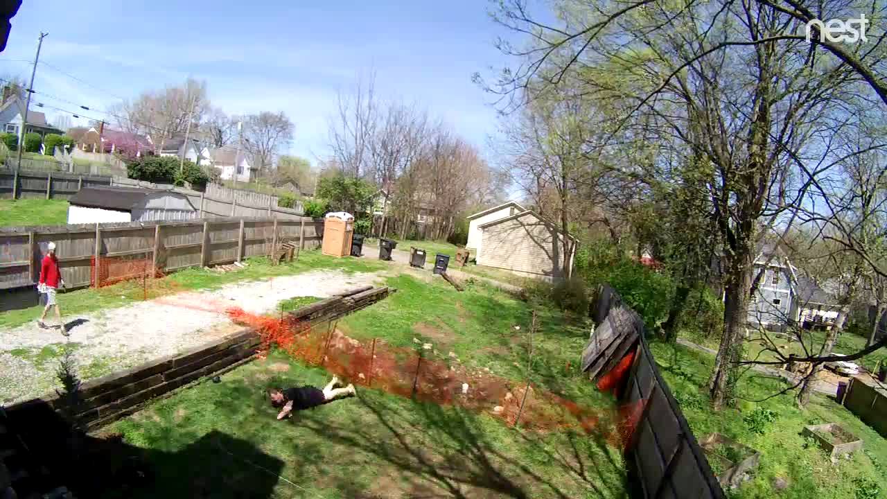 A German Shepherd dog bites a Ring security camera outside the house. Security footage