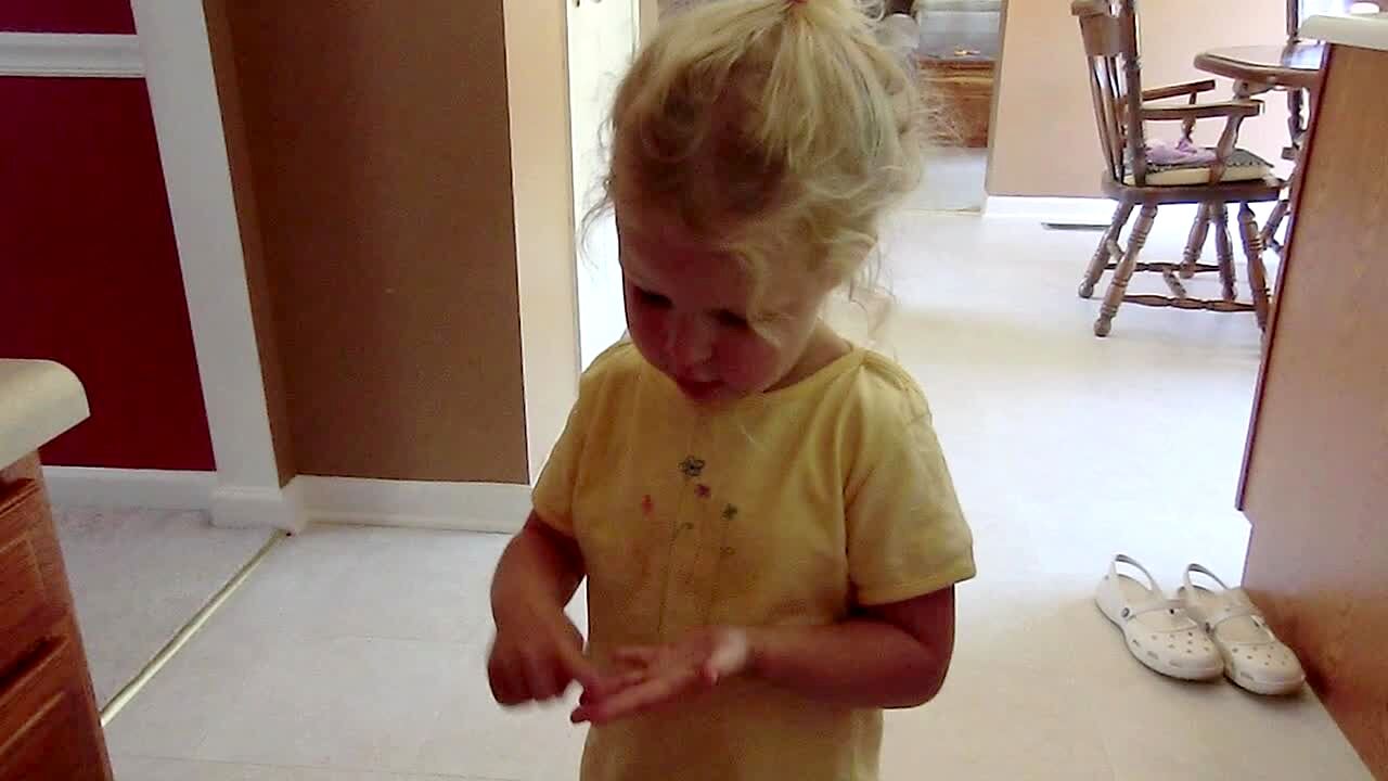 A tot girl counts into a microphone and when her tells her to go higher, she raises the pitch of her voice, instead of counting higher.
