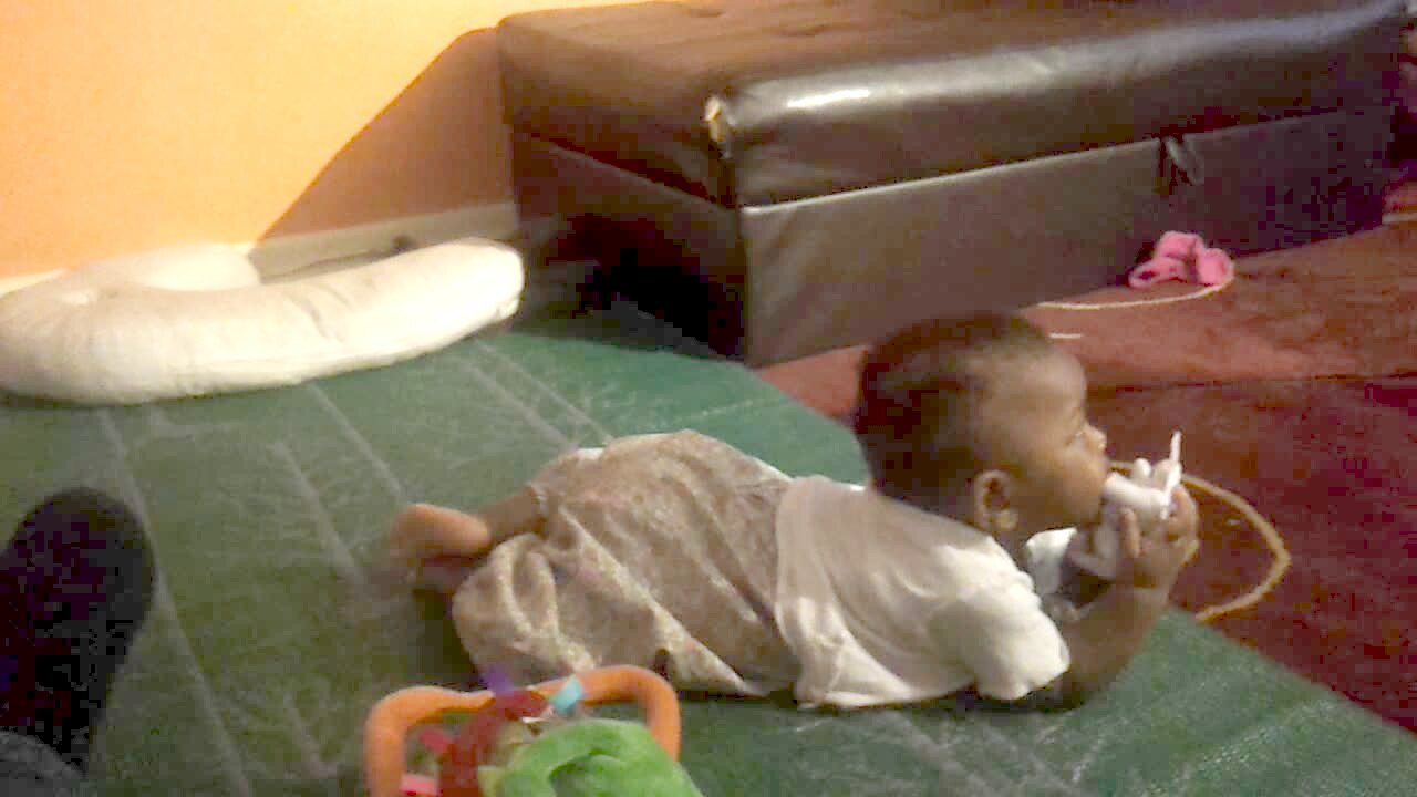 Tot girl dances to music in the hallway and baby dances in her crib.