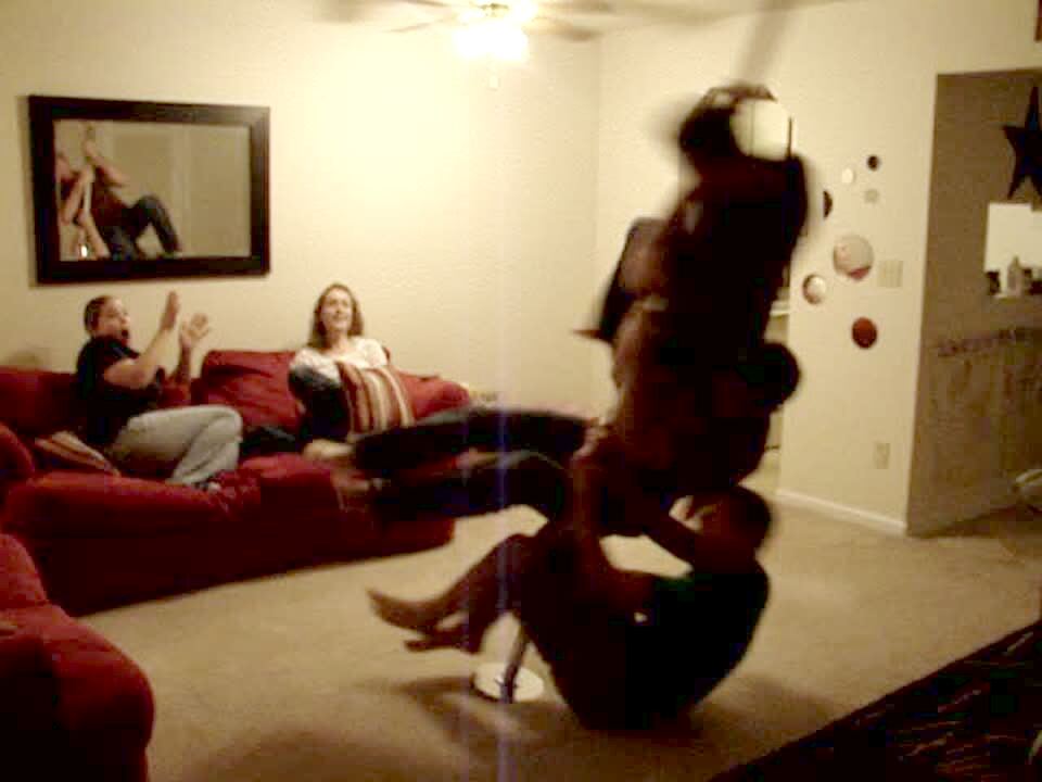 Deer walks into a house & wanders around the living room with a boy. Deer looks at household items & starts eating things. Long for edit.