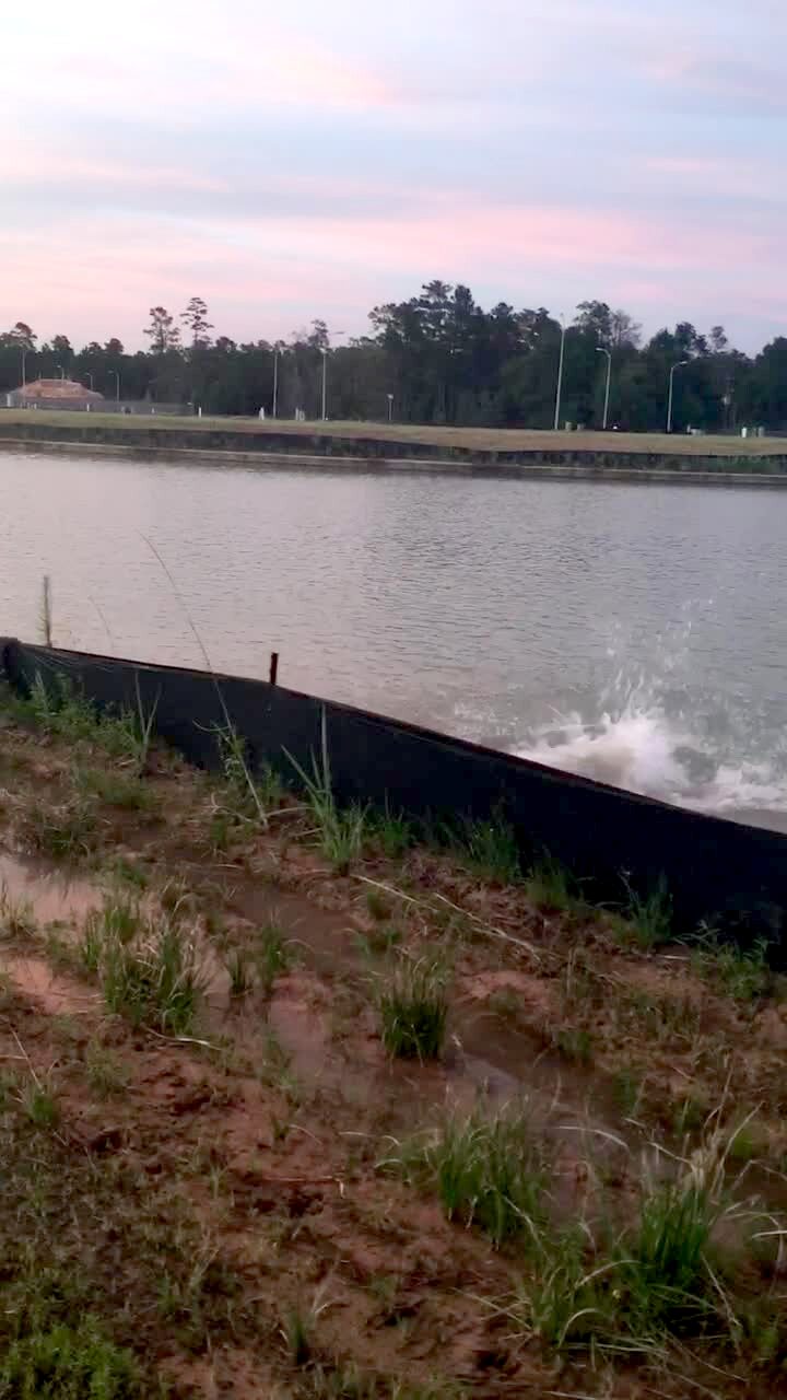 A dog runs into a lake outdoors and flips over a fence into the water.