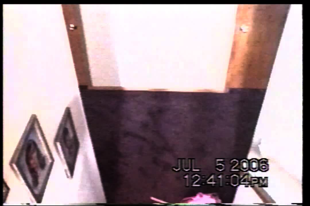 A teen girl calls her father into a bedroom, and he enters and asks her why. There is a large witch Halloween decoration next to the door, then he turns and screams when he sees it.