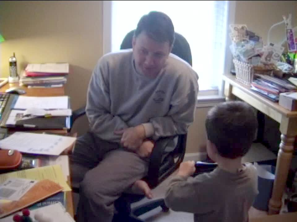 A tot boy looks into a wallet in the house and says there's no money. He shows his father the empty wallet, and and his father shows him his own empty wallet and says that's what happens when you're a father.