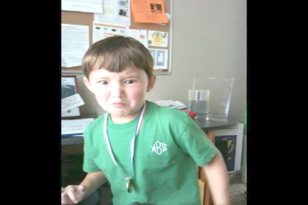 Woman swings little girl around by her legs while dancing to "My Girl." GIrl hits her head on a computer printer.