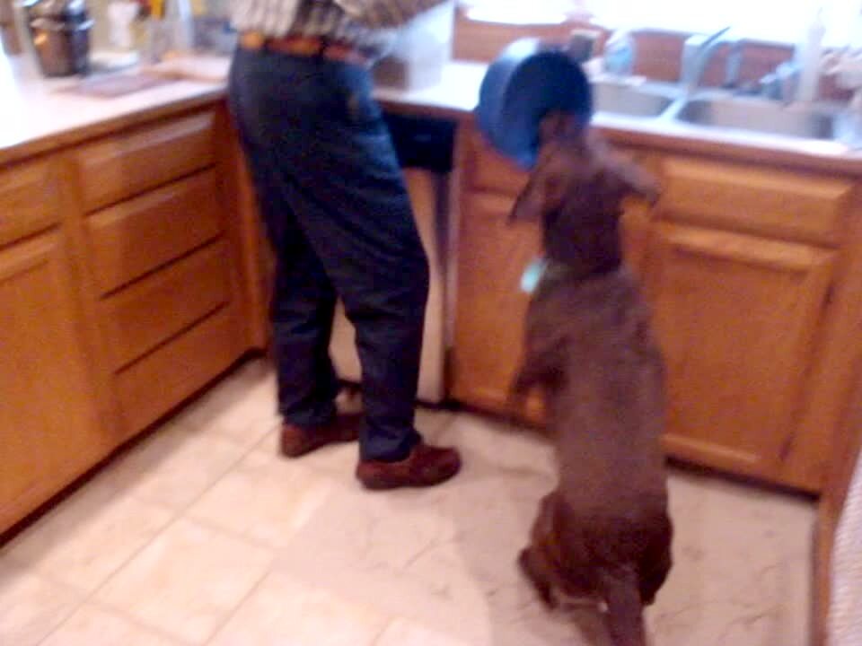 Dad throws an exercise / yoga ball at girl & knocks her down.