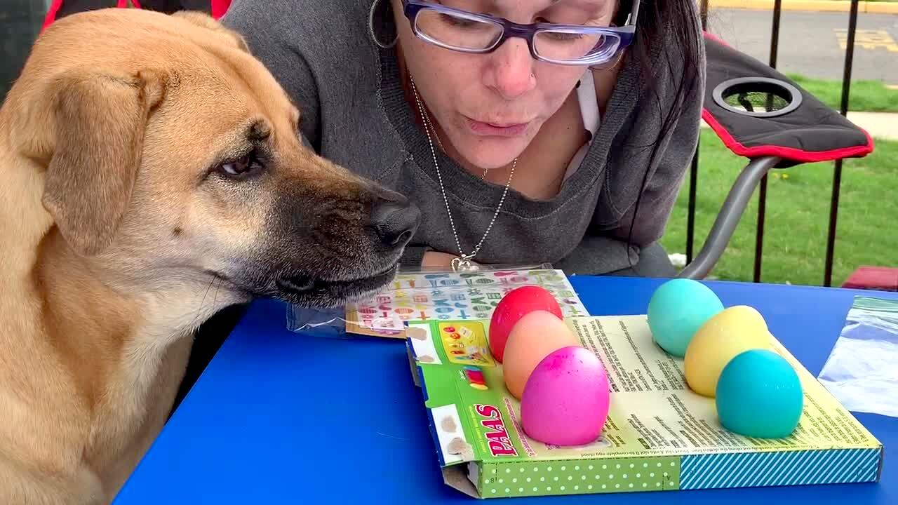 A woman asks her puppy dog if it chewed up her toothbrush and toothpaste in the house. The dog leans back and looks away from her every time she asks about it.