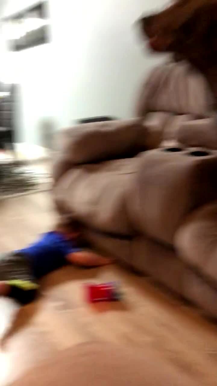 Ice cube falls down inside tot boy's diaper. girl cousin pulls it out from his butt area, then it falls on the kitchen floor. then she puts it in her mouth.