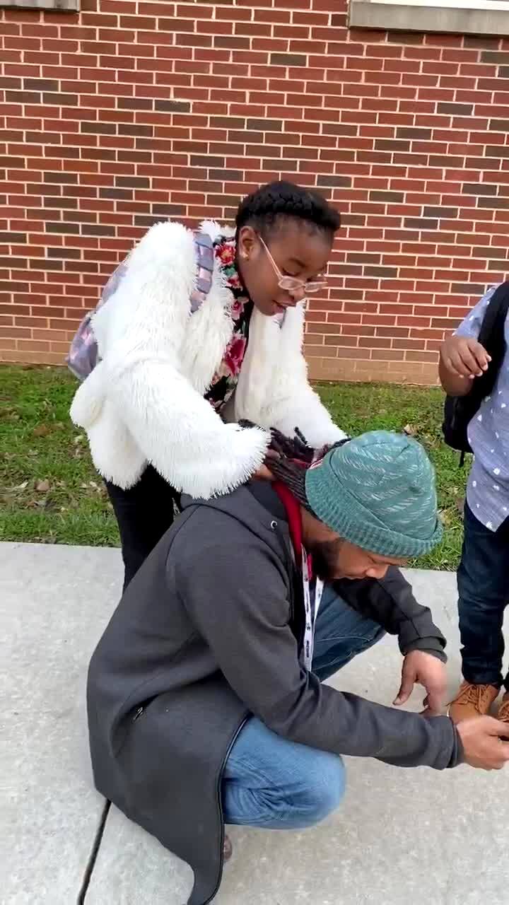 A man walks down a path with a young boy and young girl and the man asks him to tie his dreadlocks for him and they come off in her hands and she freaks out and he takes off his beanie to reveal he got a haircut and it was a prank.