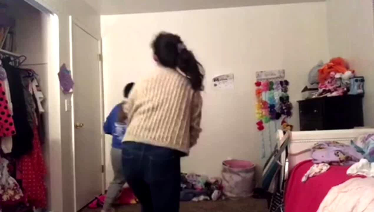 Two teen girls dance to pop music in a bedroom. At :39, one of the girls falls into a closet and the closet doors crash down onto the other girl.