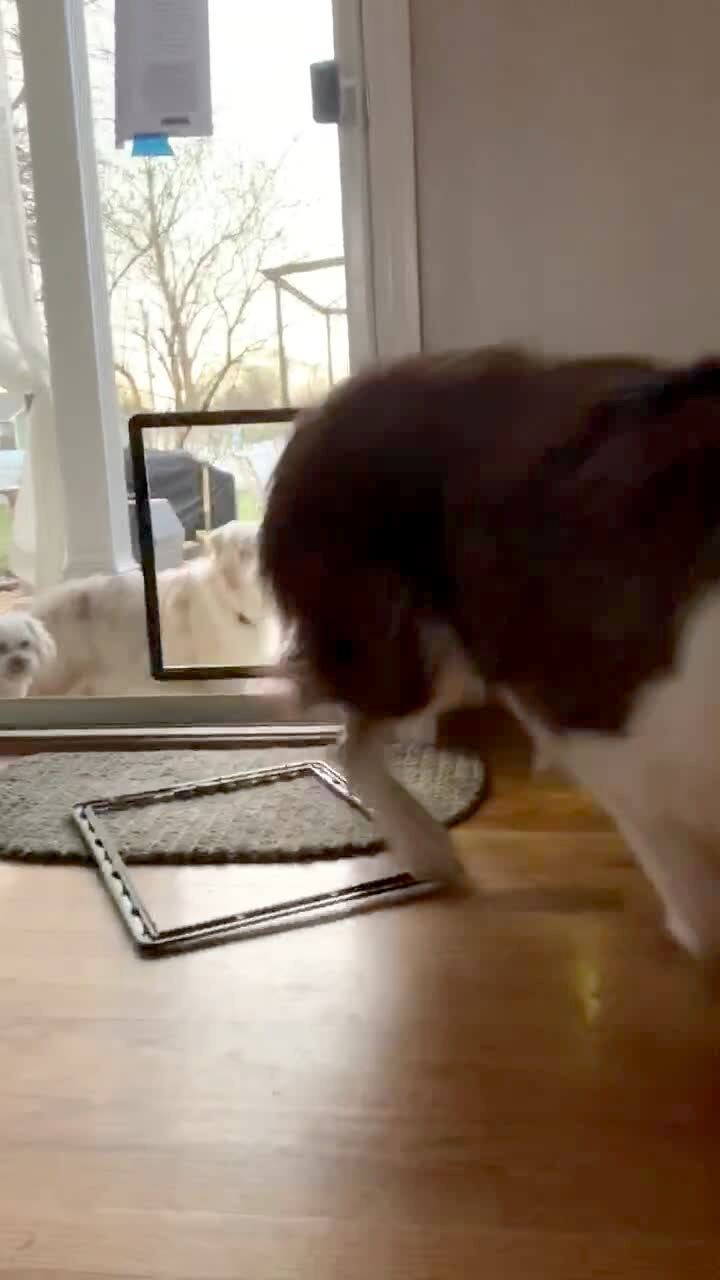 A man leans in through a car window in a yard and starts his car. Without anyone behind the wheel it drives itself forward and crashes into a tree. The car then somehow puts itself into reverse and drives backwards and nearly hits the man and the woman with the camera. The man chases after it and it chases into another tree before the man is able to safely turn off the vehicle.