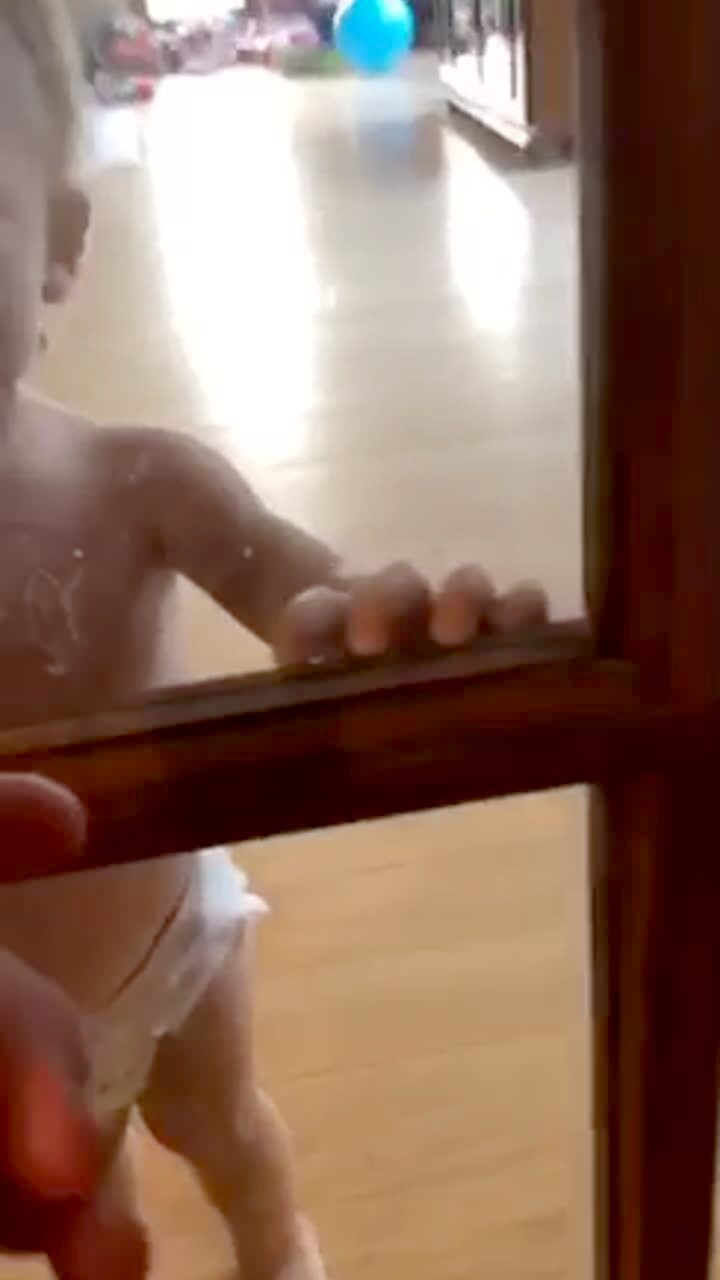 "Honey, I Found the Kid" A woman walks around the house and explains that she had to move all the stools and chairs so that her young son wouldn't climb onto the counter. She then shows that the boy moved a table to get onto the counter and covered himself in honey.
