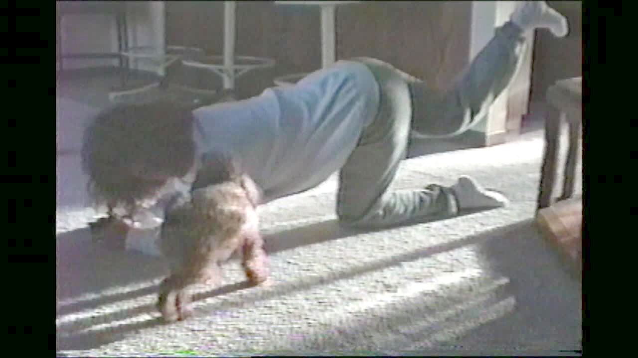 Little brown dog stands/walks on hind legs in living room. Cute. (Best part before 0:30)