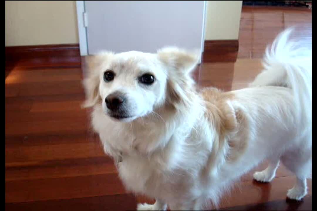When woman says "you want to take a walk?" the dog's ears perk up. When she asks if the dog wants to take a bath the dogs ears go down. Woman repeats several times.