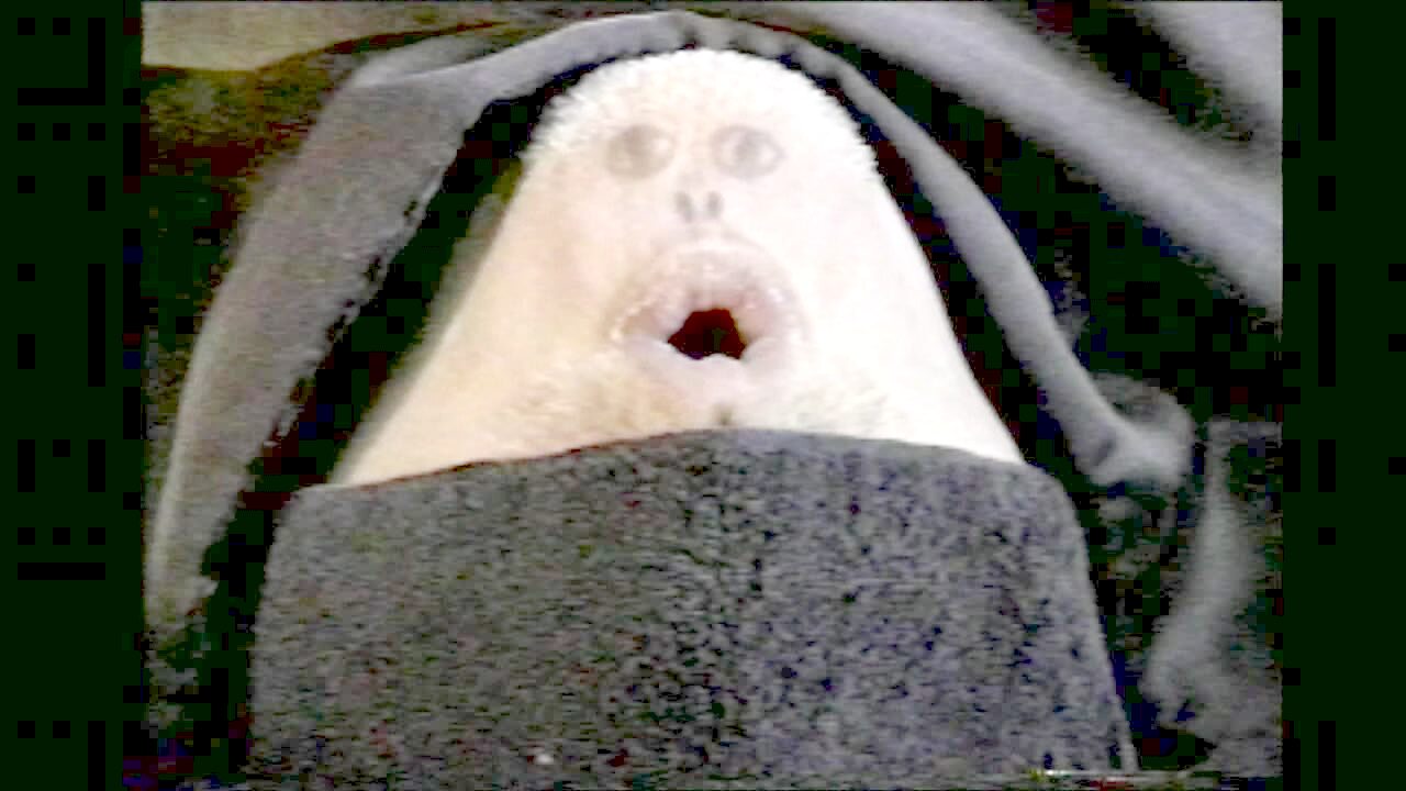 "Dog & Puppet Show" Stuffed duck teases pug dog. Dog stares blankly at duck face then slowly bites it at the end.