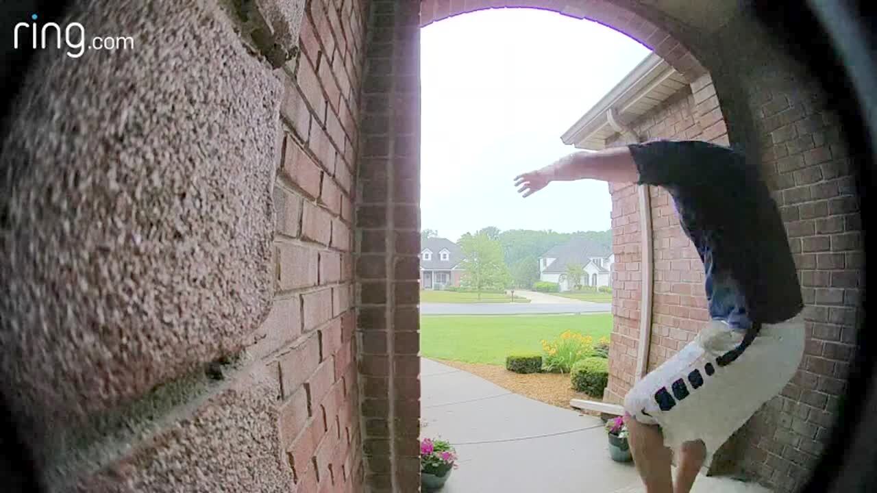 A woman opens the front door to a cat then says "this is not your home" and her cat chases after it.