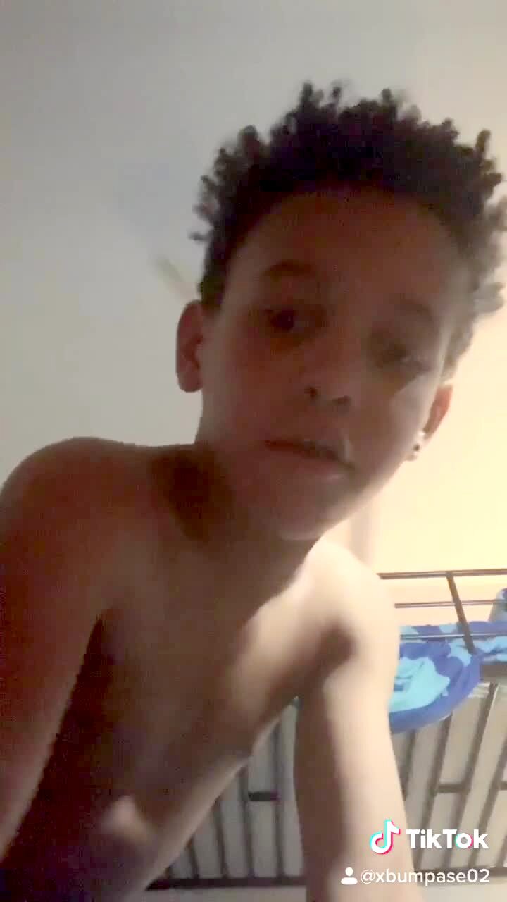 A young boy records himself as he jumps off a bunk bed and cracks open a lighbulb with his head in the bedroom.