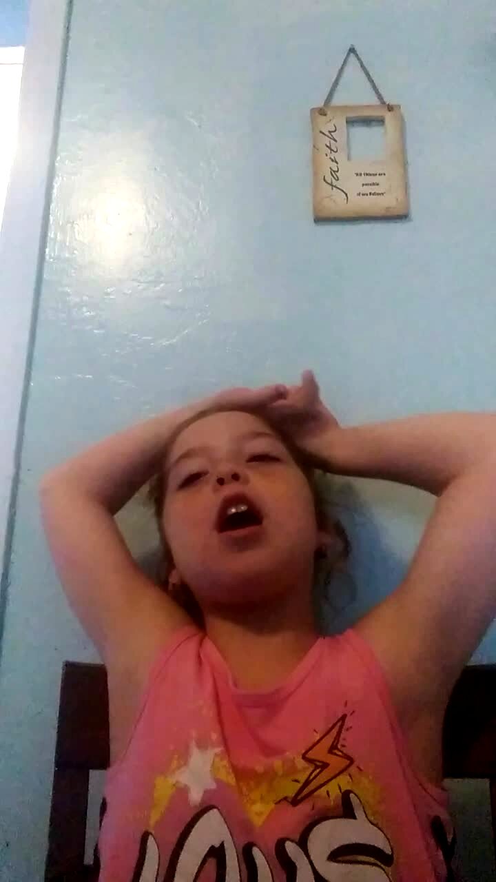 A young girl falls when she does a trust fall in the wrong direction after her teen sister blindfolds her for the fall in their living room.