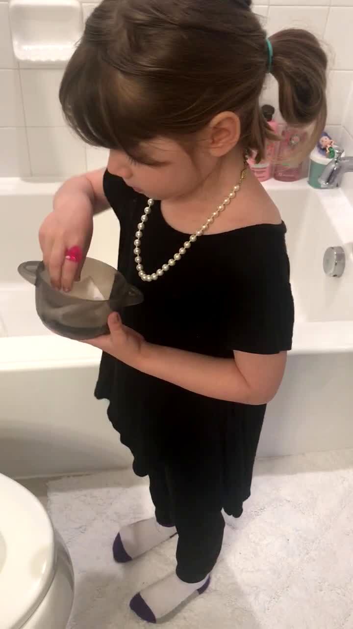 A tube of blue food dye explodes on a young girl when she squeezes it too hard as she tries to color a blob of slime on the dinner table. Assignment America: Slime. Action starts at 1:20.