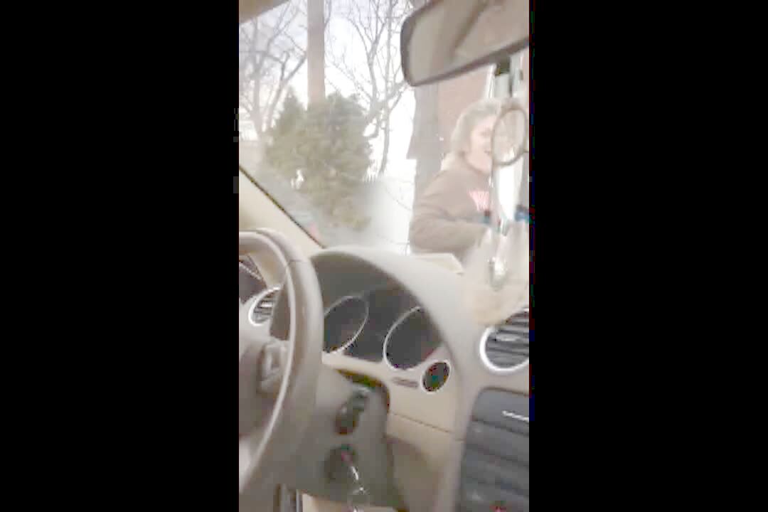 A woman tries to scare a squirrel outside her house window, and when she hits the window it shatters.
