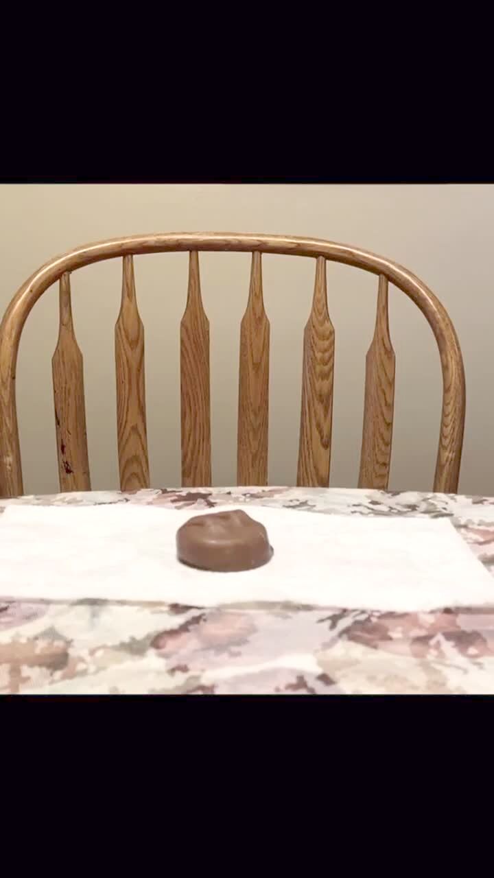 "Temptation Challenge Challenged" A mom does the snack test to her tot girl and she says she will pet the candy and touches it as she waits for her mom in a house.