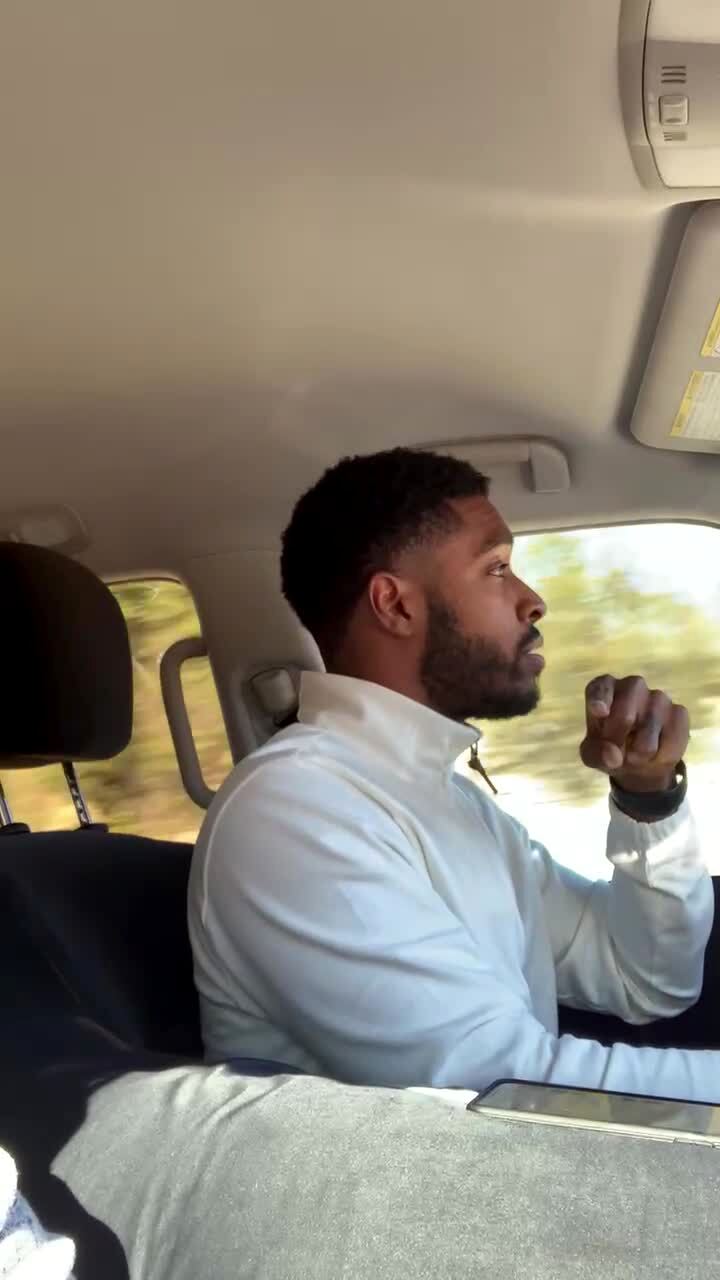 A man sings his own version of the Itsy Bitsy Spider as the song plays on the car stereo.
