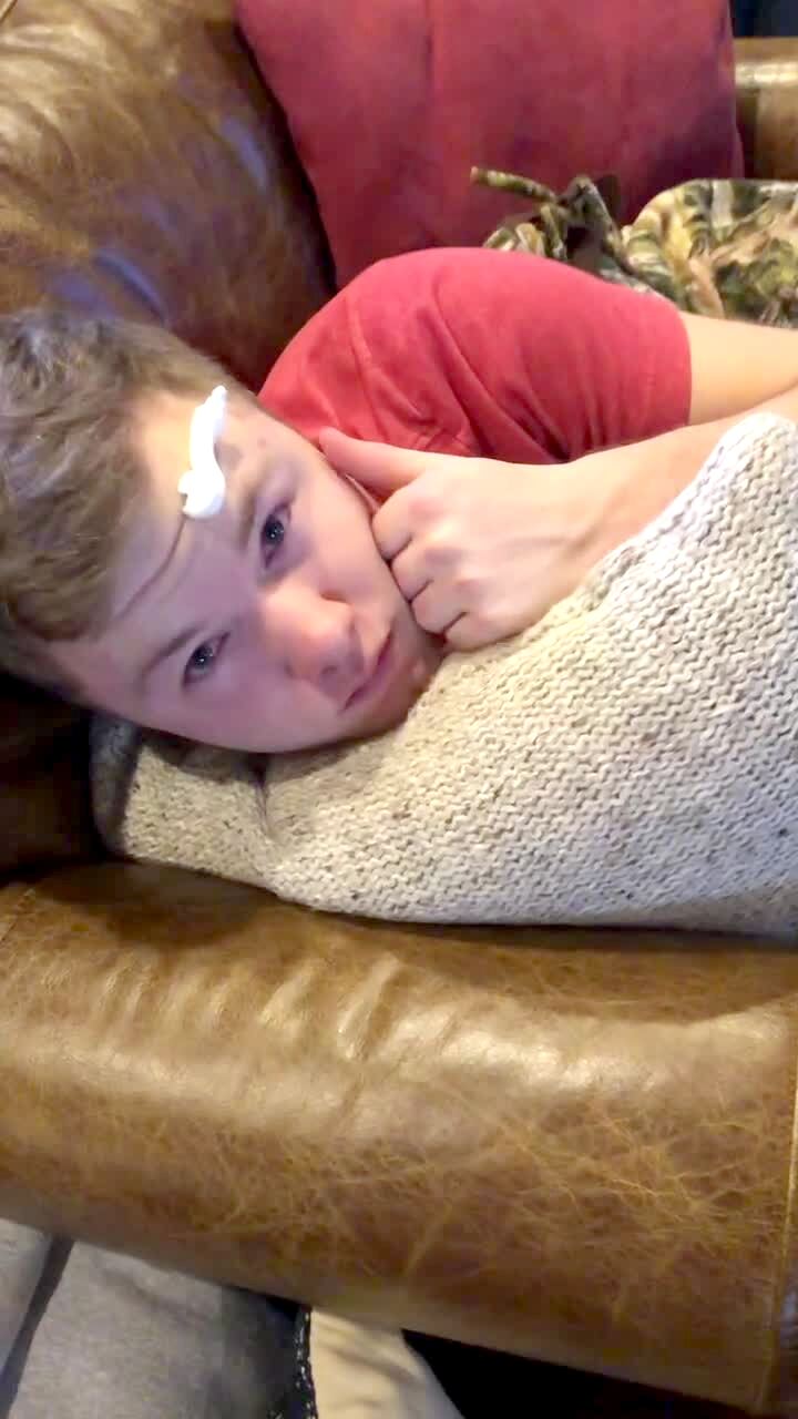A young boy with a big bald spot on top of his head tells his mom that he shaved his hair, but then says that it was an accident because he broke his hair.