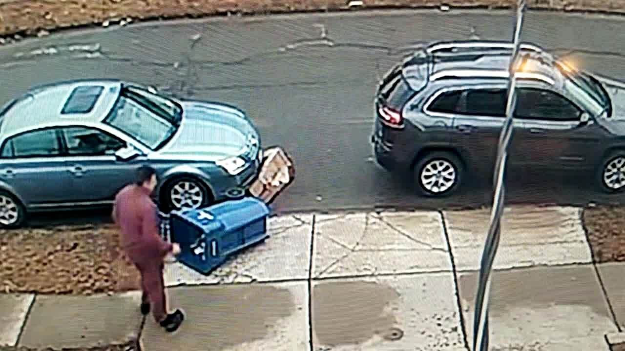 A man tries to close the back windshield on a truck and the glass shatters because a baseball was holding the window open. Security footage.