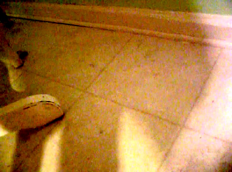 A man drives a tractor up to a ramp and tries to get it into a pickup truck on a driveway, but it gets stuck, then he and the tractor both fall off the ramp. Security footage.