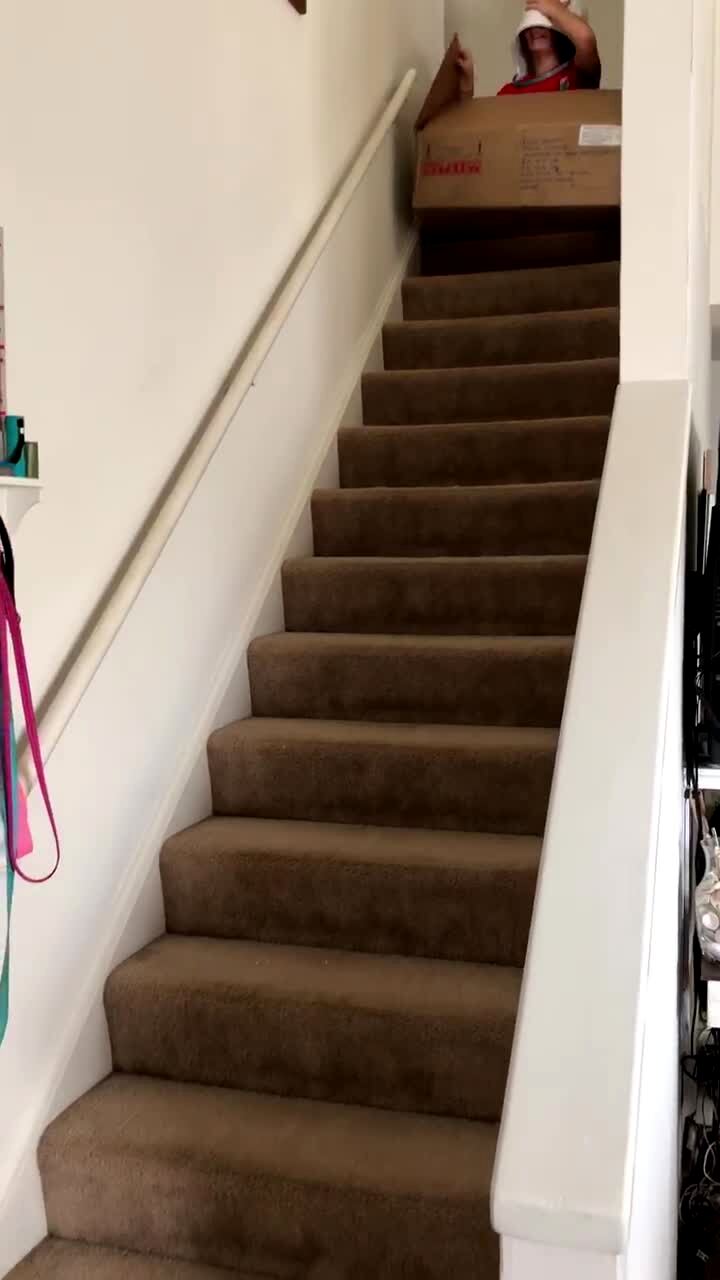 A woman sits in the passengers seat of a car, driving through a safari park, and an elk approaches her window. She panics and screams, and throws a carrot out of the window.