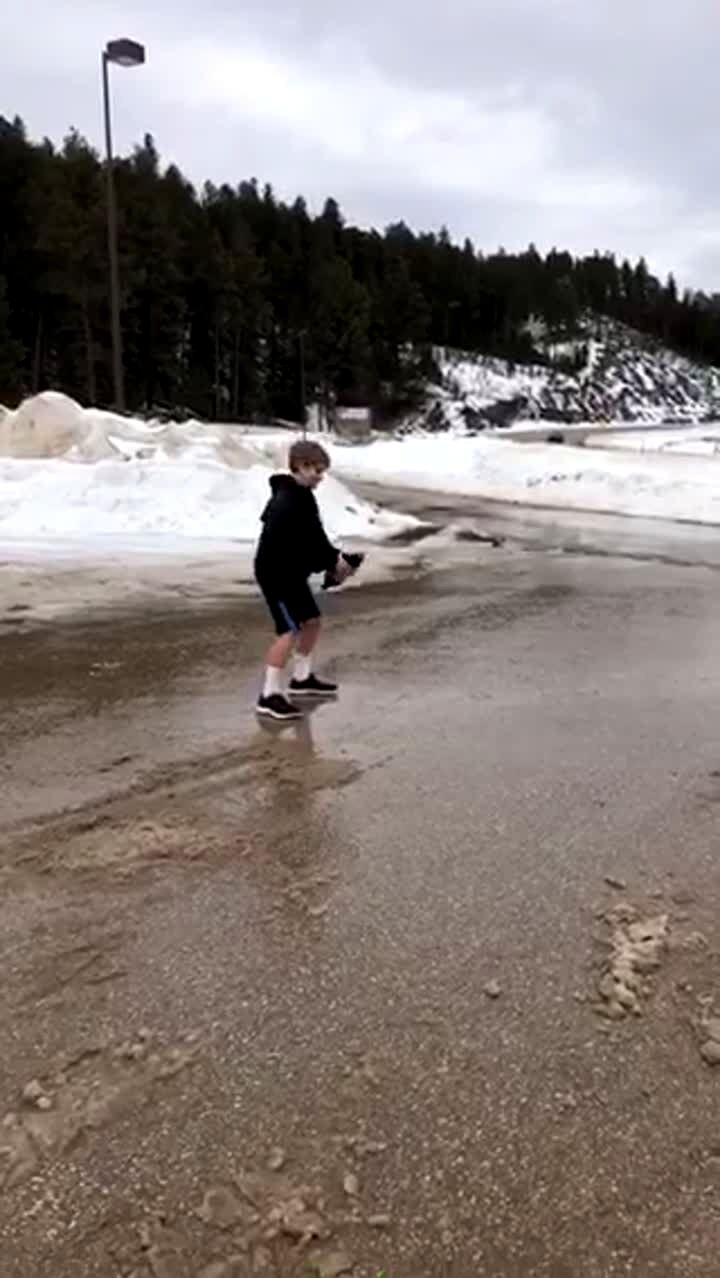A young boy does the Bottle Bounce Challenge but the bottle hits him in the groin.