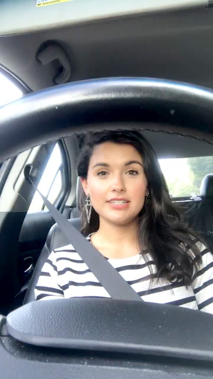 A woman gasps in the car when she spills bread pudding all over her dress after the lid of the plastic container it's in comes off while filming a vlog.
