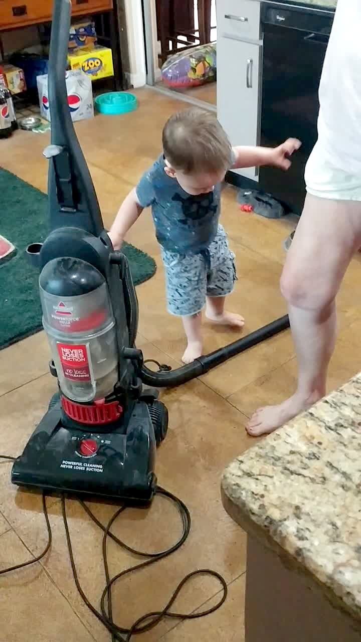 "Snout Snack" Golden retriever has a dog treat placed on his nose and told to wait until he can eat it. Tot boy takes the treat off of the dog's snout and eats it before the dog can get to it. Dog then attempts to eat the treat, but it isn't there and he looks for it.