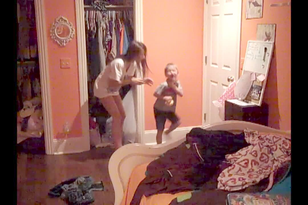 Parrot bites teen girl's face when she introduces the bird to the camera. Girl sits in a wicker chair.