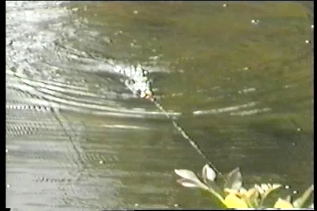 Fishing for an alligator. Gator eats fish off end of fishing line.