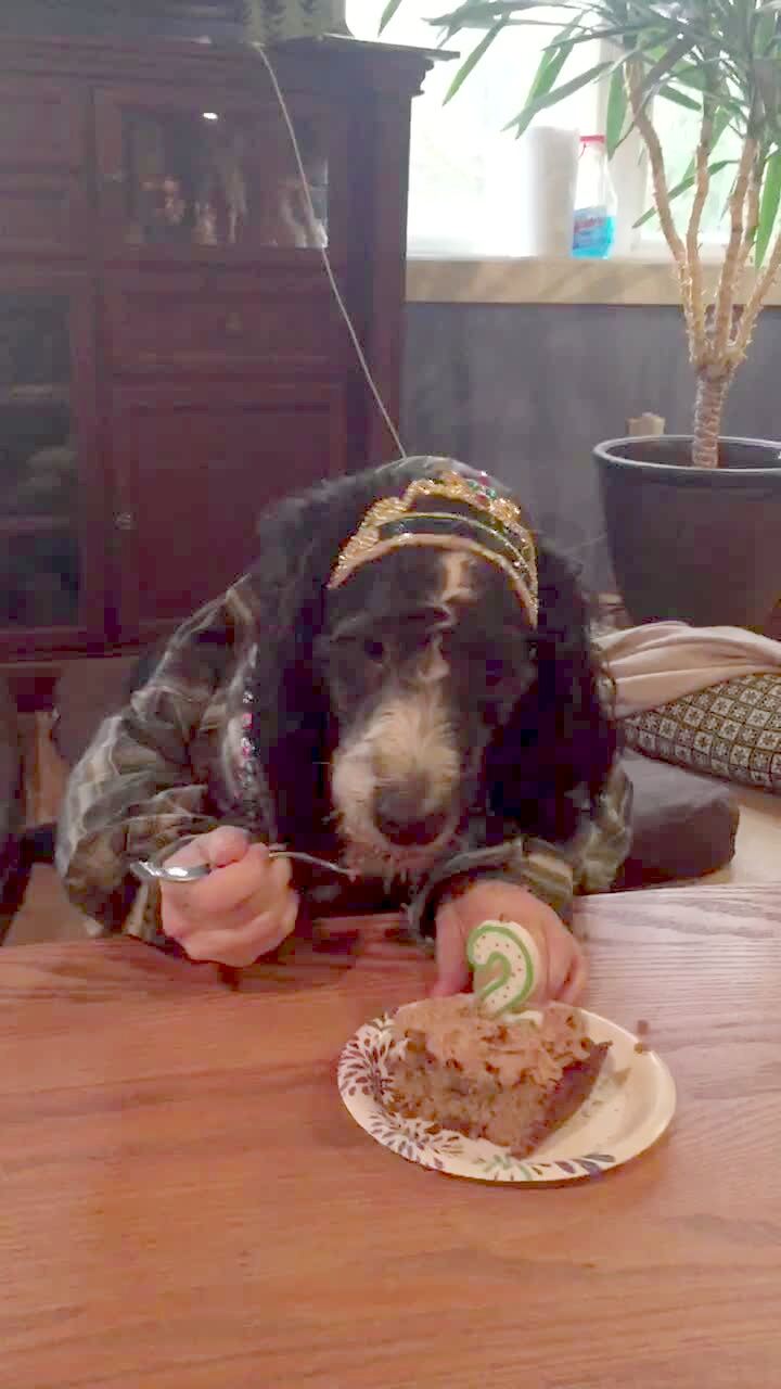 A young boy drives on a motorcycle in a yard while his dog runs behind him. Then the boy hits a jump and flies over the handlebars, falling to the ground. Music rights not cleared.