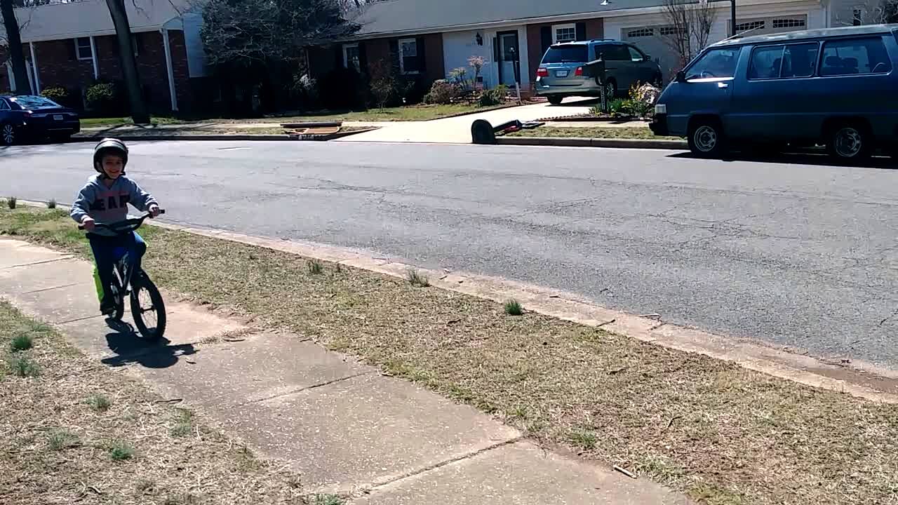 A woman finds her tot son covered in mud in her bathroom as he turns on her bath. She tells him to walk outside, and then he walks through the house to the back patio with two more tot boys also covered in mud.