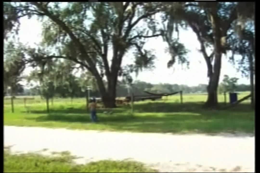 Boy runs from a goose who's chasing after him to attack. Mom tapes and laughs really hard. Geese, birds.