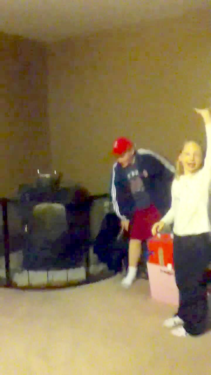 Boy jumps when walking down the stairs & falls because he hit his head on the ceiling. Boy hits it so hard he dents the ceiling. With recovery.