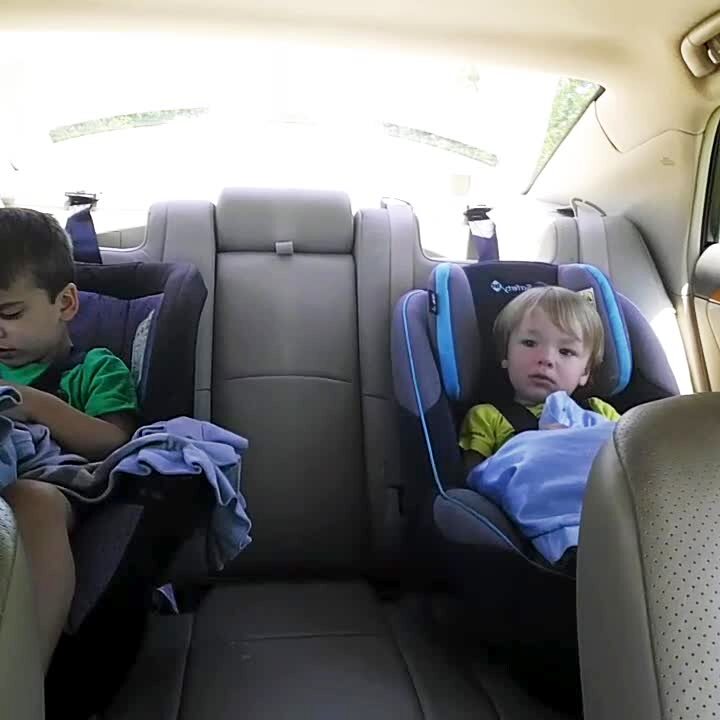 A young boy repeatedly says "leave me alone," in the backseat of a car each time his tot brother yells, but the younger brother doesn't listen and continues to annoy him. Sibling rivalry
