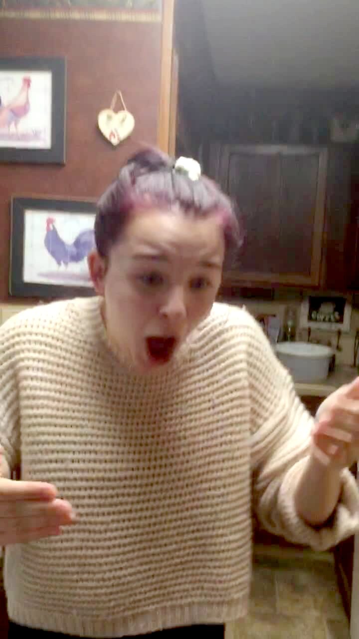 A woman screams in the kitchen as her hair is stuck in a Kitchen-Aid mixer. Someone stops it and they get her hair out of it.