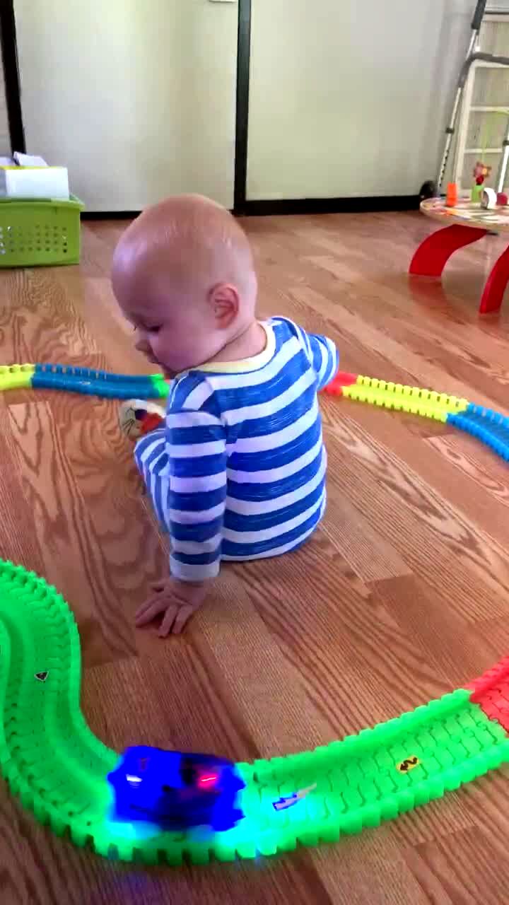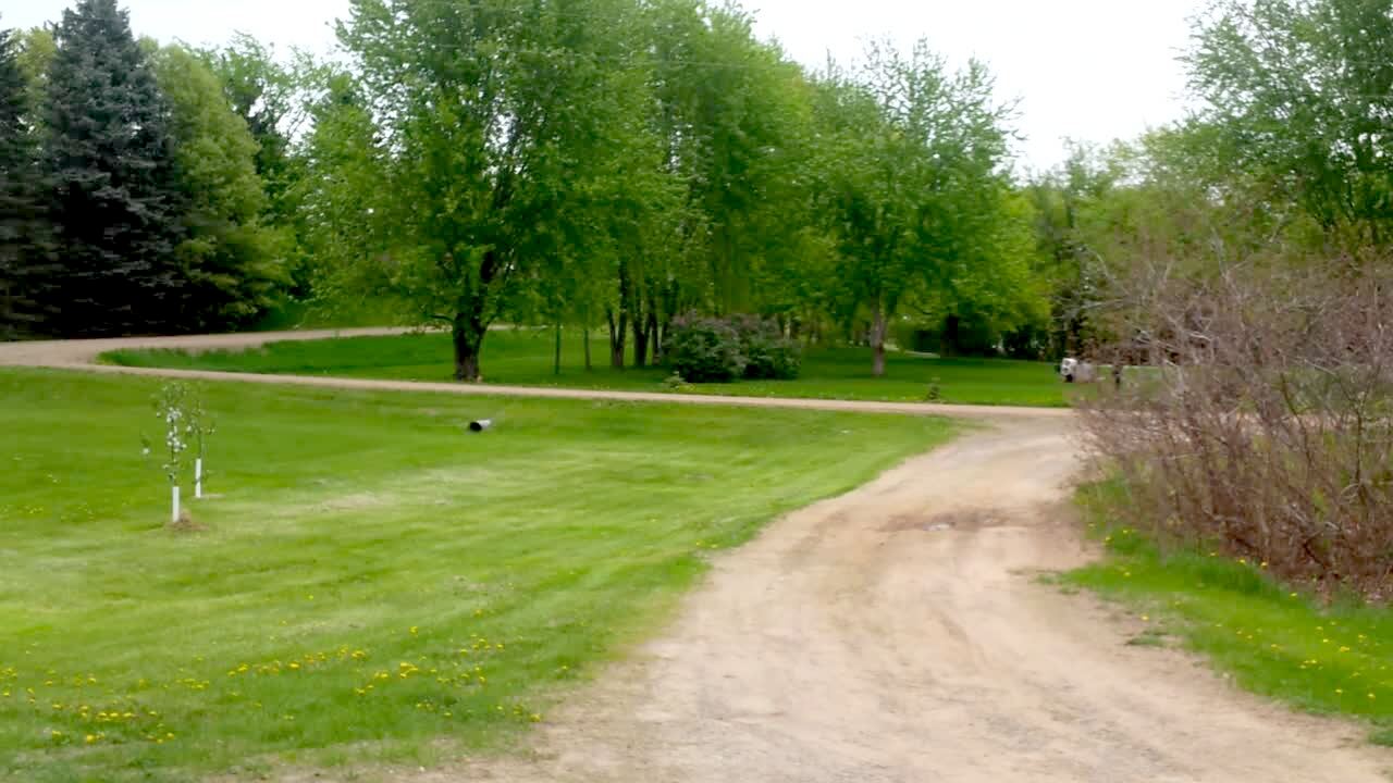 Man tries to balance on unicycle on obstacle course in back yard, falls hard. .