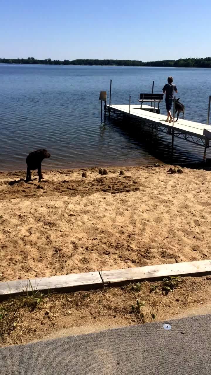 Two teen boys carry a log and run toward and old rotten tree stump in the woods, trying to knock it down. The stump doesn't fall over and they both get hit in the face with the log they carry. It knocks them down to the ground. Another teen boy watches. Short tails.