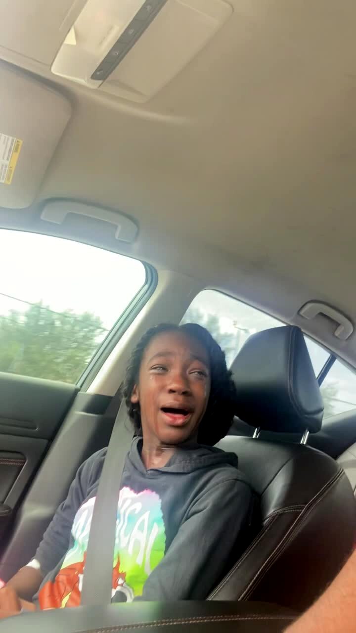 A teen girl being driven home after dental surgery cries and says her mom is an alien because her "hair comes off."