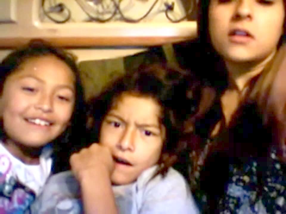 Computer trick scares girl: it screams, she screams, then it scares little boy.