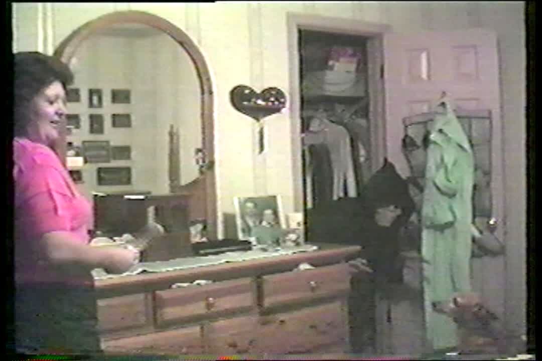 "Horror Behind The Door" Boy scares his teen sister when wearing a scary costume. He hides in the closet. She screams, runs out of the room. Practical joke, hidden camera, Halloween, mask.